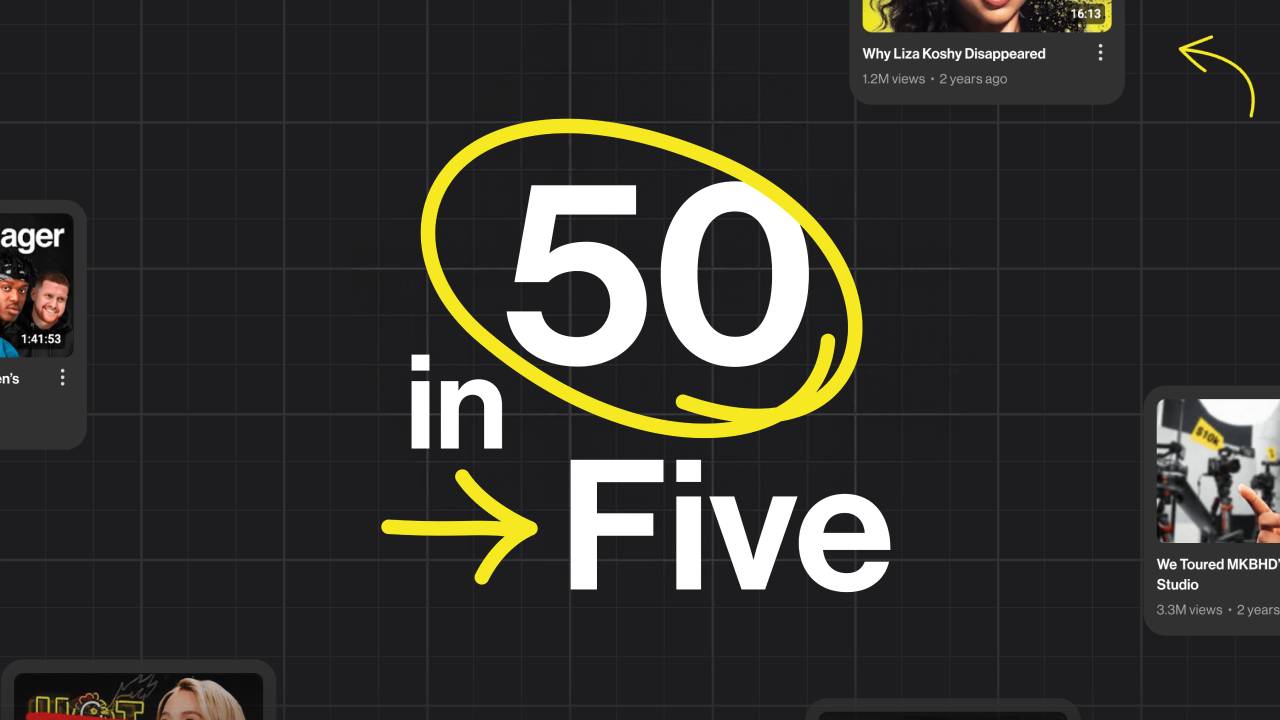 Take on the 50 in Five challenge: 5 days, 5 video lessons and challenges designed to help you generate 50 standout video ideas for your channel.